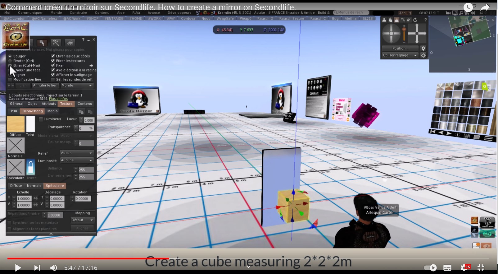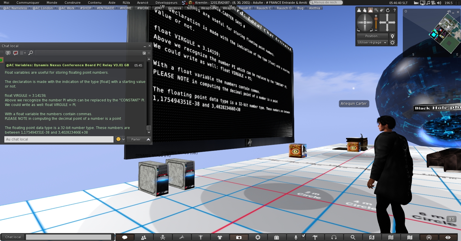 L’outil de travail étant enfin créé et parfaitement adapté, il était maintenant possible de donner des cours de programmation LSL Script en Live vidéo avec archivage pour les personnes qui n’auraient pas pu venir le jour J.