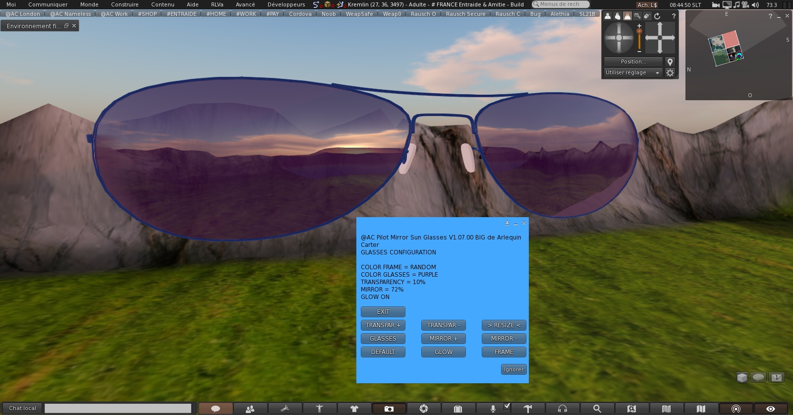 L’activation du menu s’effectue par un click sur les lunettes. Je vous conseil de vous positionner sur un PoseStand ou d’utiliser celui intégré à votre viewer SL.