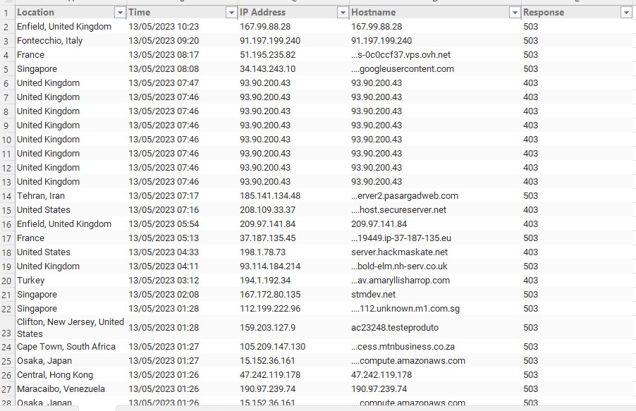 Si cela vous amuse de faire une analyse, je vous fourni la liste du jour en format Excel, il y en a un peu plus de 150 sur 24h00. Y’en a qui n’ont vraiment rien d’autre à foutre.