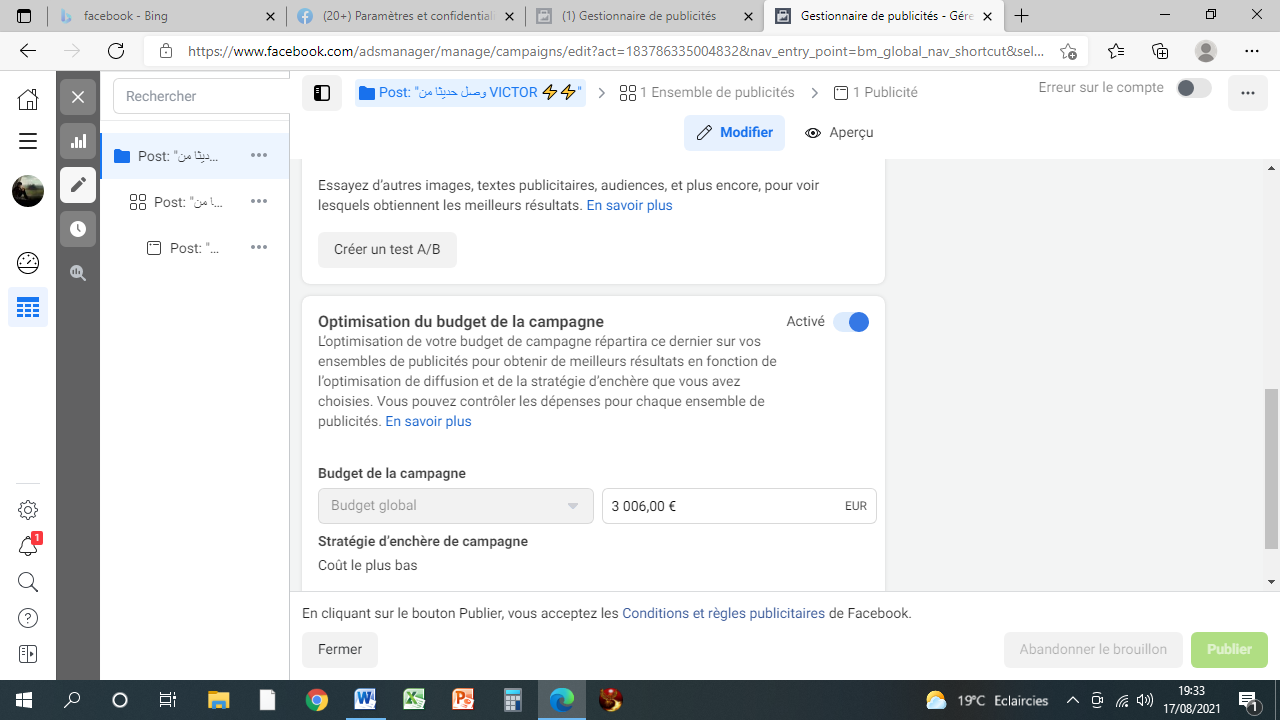 Je dois avouer que le problème a rapidement été réglé. J’avais fourni une liste de preuves avec des photos d’écran pour expliquer que je n’étais pas à l’origine de deux campagnes de publicité. Regardez bien l’image ci-dessous.