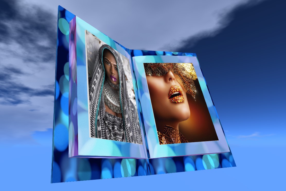 Toute les textures du livre sont personnalisables à vos couleurs, face par face car le FlipBook est 100% réalisé en mesh à faible cout en prims terrain, 2 ou 3 SLI suivant la version.