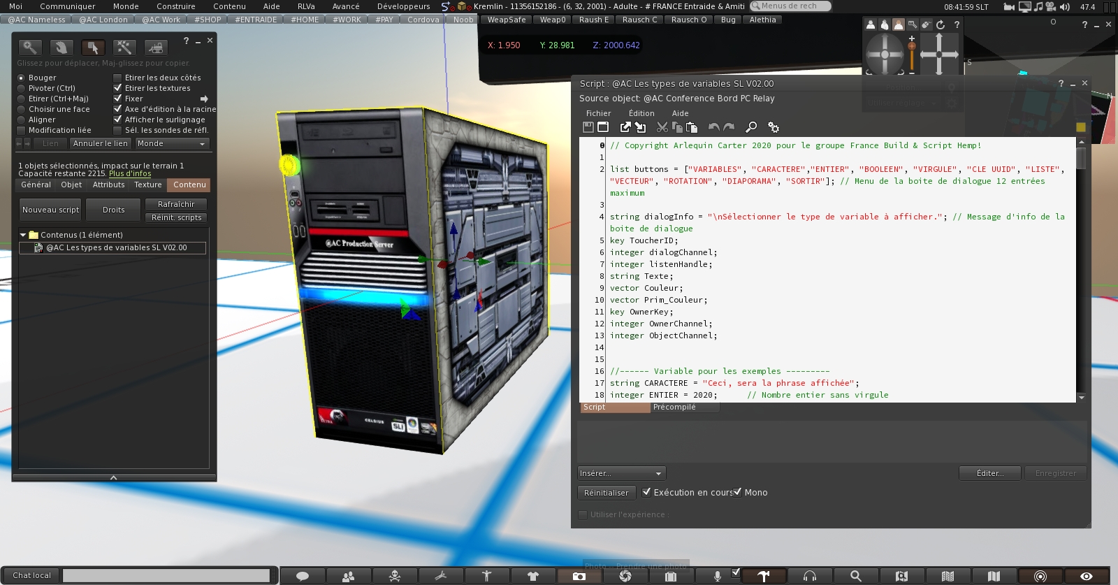 Si vous connaissez le langage LSL SCRIPT, cela vous ouvre d’innombrables possibilités.